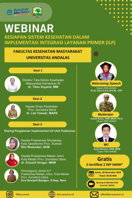 Padang, [29 November 2024] — Fakultas Kesehatan Masyarakat Universitas Andalas (FKM Unand) dengan bangga mengumumkan penyelenggaraan Field Epidemiology Training Program...